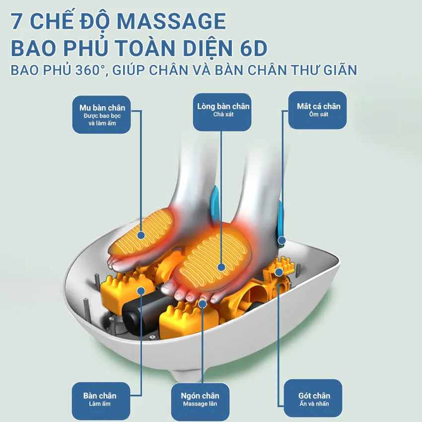 ✓ Công nghệ massage 6D: Bảo vệ sức khỏe bàn chân 360 độ: Mu bàn chân, ngón chân, lòng bàn chân, gót chân, mắt cá chân