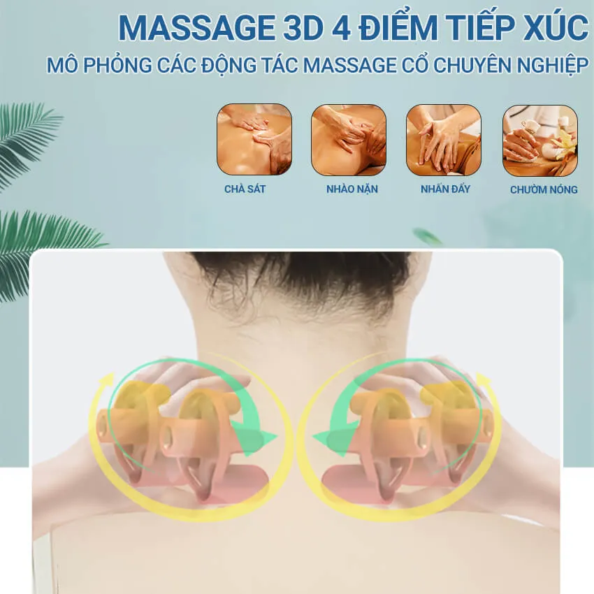 ✔ Tích hợp 4 con lăn kết hợp cùng 3 chế độ massage mô phỏng lại động tác xoa bóp, nhào nặn,… giúp thư giãn vùng vai cổ, làm giảm đau nhức nhanh chóng