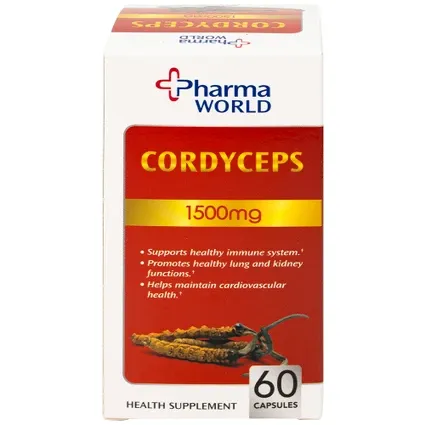 Pharma World Cordyceps 1500mg là một sản phẩm tự hào mang tới cho bạn Cordyceps, còn được gọi là đông trùng hạ thảo. Được nghiên cứu khoa học cho thấy Cordyceps không chỉ giúp cải thiện sức khỏe mà còn hỗ trợ chức năng phổi và thận, giúp cơ thể của bạn hoạt động ổn định và khỏe mạnh. Thêm Cordyceps vào chế độ chăm sóc sức khỏe hàng ngày của bạn có thể là một cách hiệu quả để tăng cường sức khỏe của cả phổi và thận.